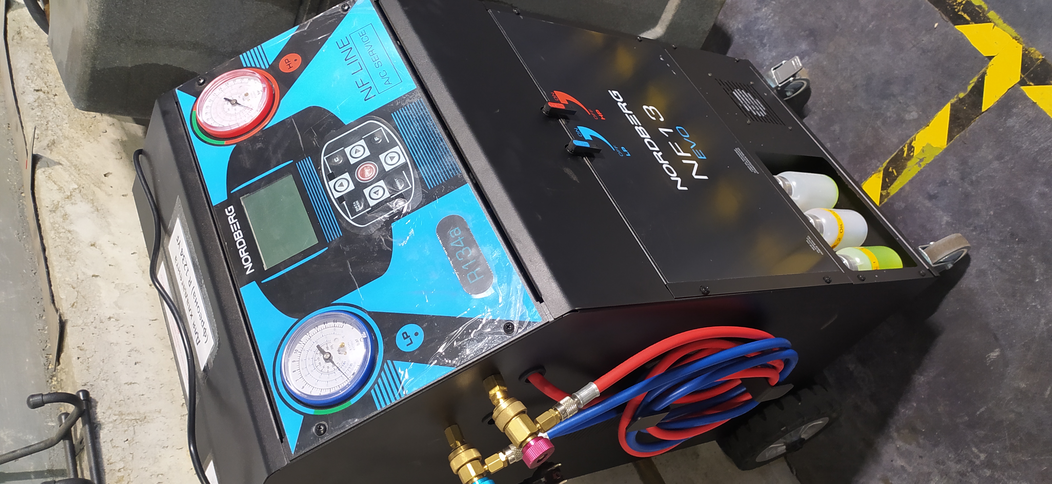 Но так это не работает! Для обслуживания кондиционера, его надо подключить к специальному автоматизированному стенду. С его помощью можно проверить все рабочие параметры системы. Затем он скачает хладагент (на основе фреона), взвесит его, при недостаче добавит и закачает обратно. Кроме того, обычно добавляют светящуюся в УФ-свете жидкость, которая при необходимости позволит найти утечки в системе климат-контроля. Фактически это «перезагрузка» системы климат-контроля!